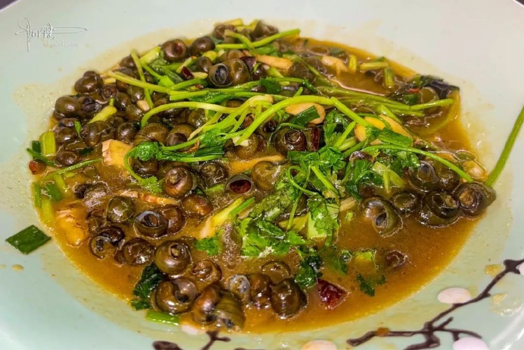 楠溪江红田鱼,溪螺好像是这里招牌性的美食,前者肉质软嫩一点也不腥,唯一让我耿耿于怀的就是它们都不刮鳞片,哈哈,或许这也是这道菜的亮点之一吧。这个季节的溪螺仍然很鲜也很耐“啜”,不知道是不是心理作用,云水谣烧得特别入味。
