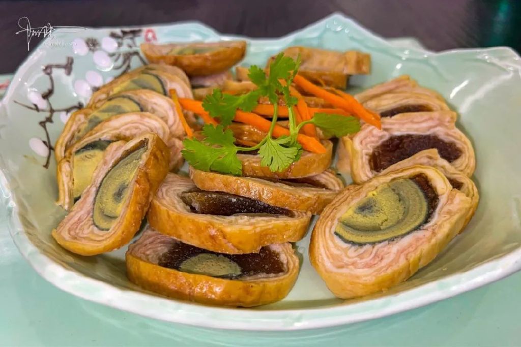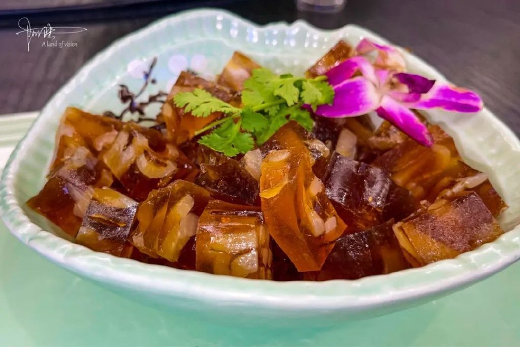 不知道是不是口味差异,这道凉菜“鸡卷肉”是这几年出差,唯一一道让我“望而生畏”的家伙。用我在朋友圈感叹的话来讲,就是“五味杂陈,难以下咽”,那种辛辣酸涩以及臭鸡蛋的味道,真是太不起它的容貌了。