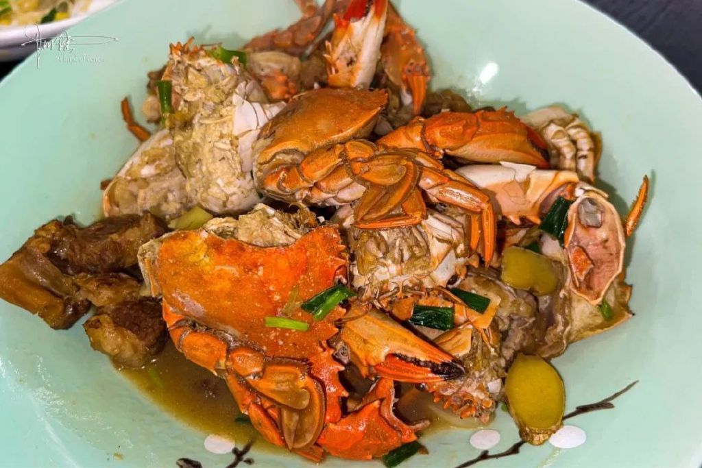 排骨老虎蟹是老板强烈推荐的特色菜,食材都很新鲜,蟹肉饱满,肉质比我们平时吃的梭子蟹要更紧实一些,因为放了酱油,又和排骨搭配一起烹饪,故而没尝出来螃蟹肉自带的那种淡淡的回甜味。