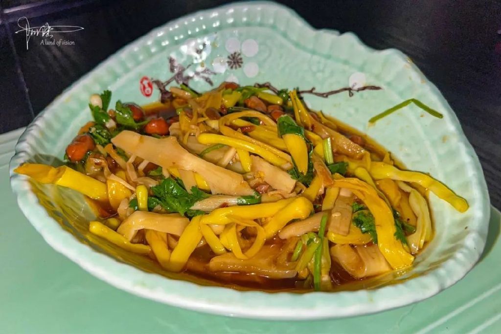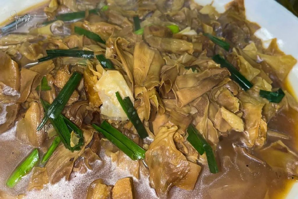 笋衣好像是当地的家常菜,跟猪蹄一起炖煮后,既不肥腻又带点嚼劲,两者一起在口腔中翻滚,带出层次分明的软糯和清脆口感,非常好吃。