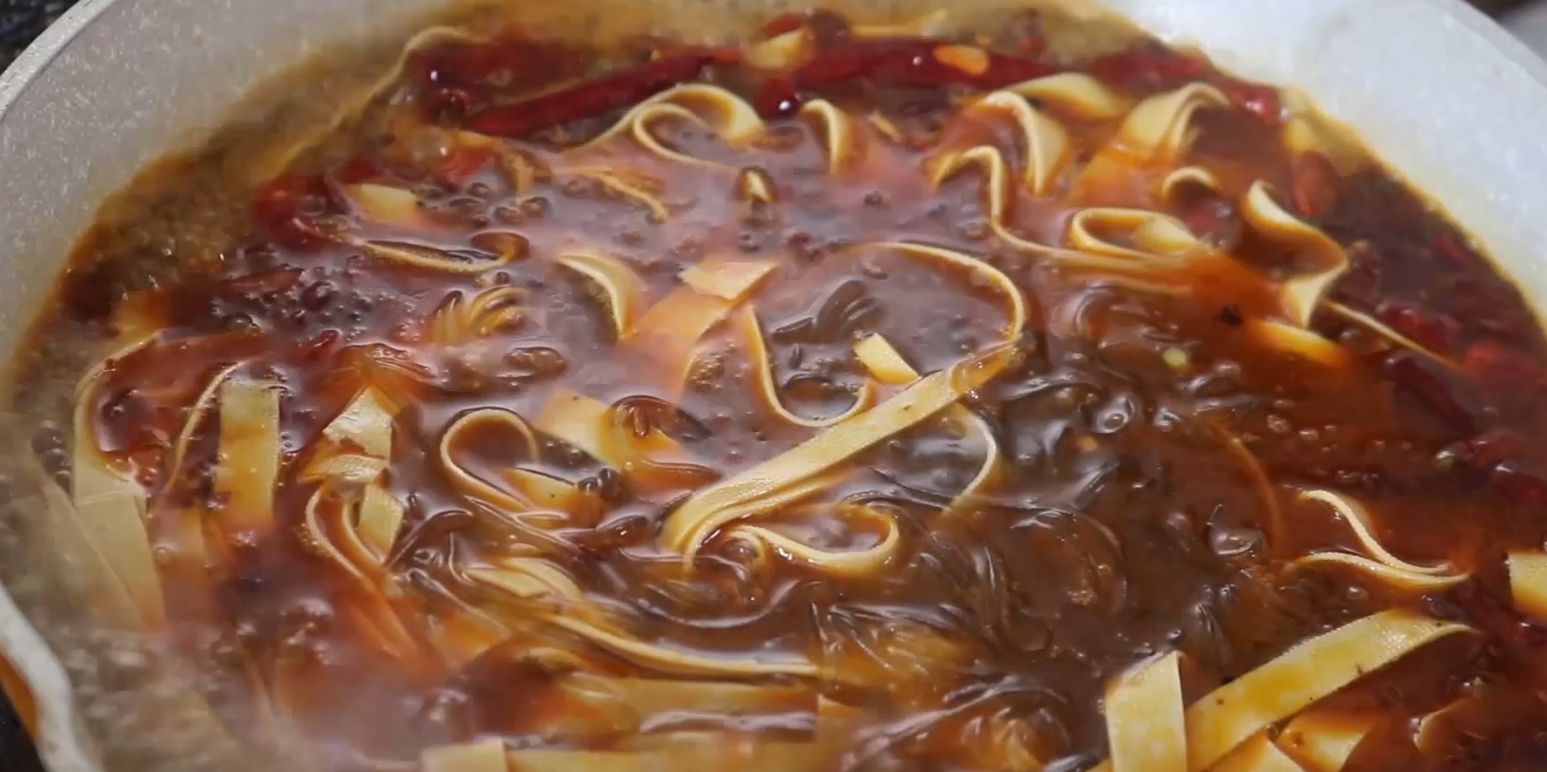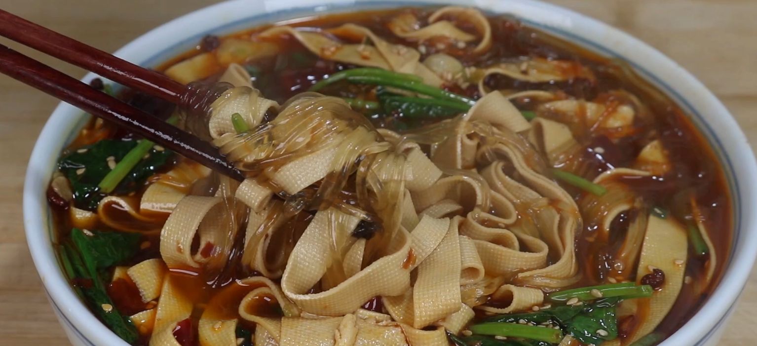 【烹饪食材】豆皮,粉丝,菠菜,大蒜,生姜,干辣椒,花椒,食盐,食用油,火锅底料,生抽,蚝油,鸡精,白芝麻