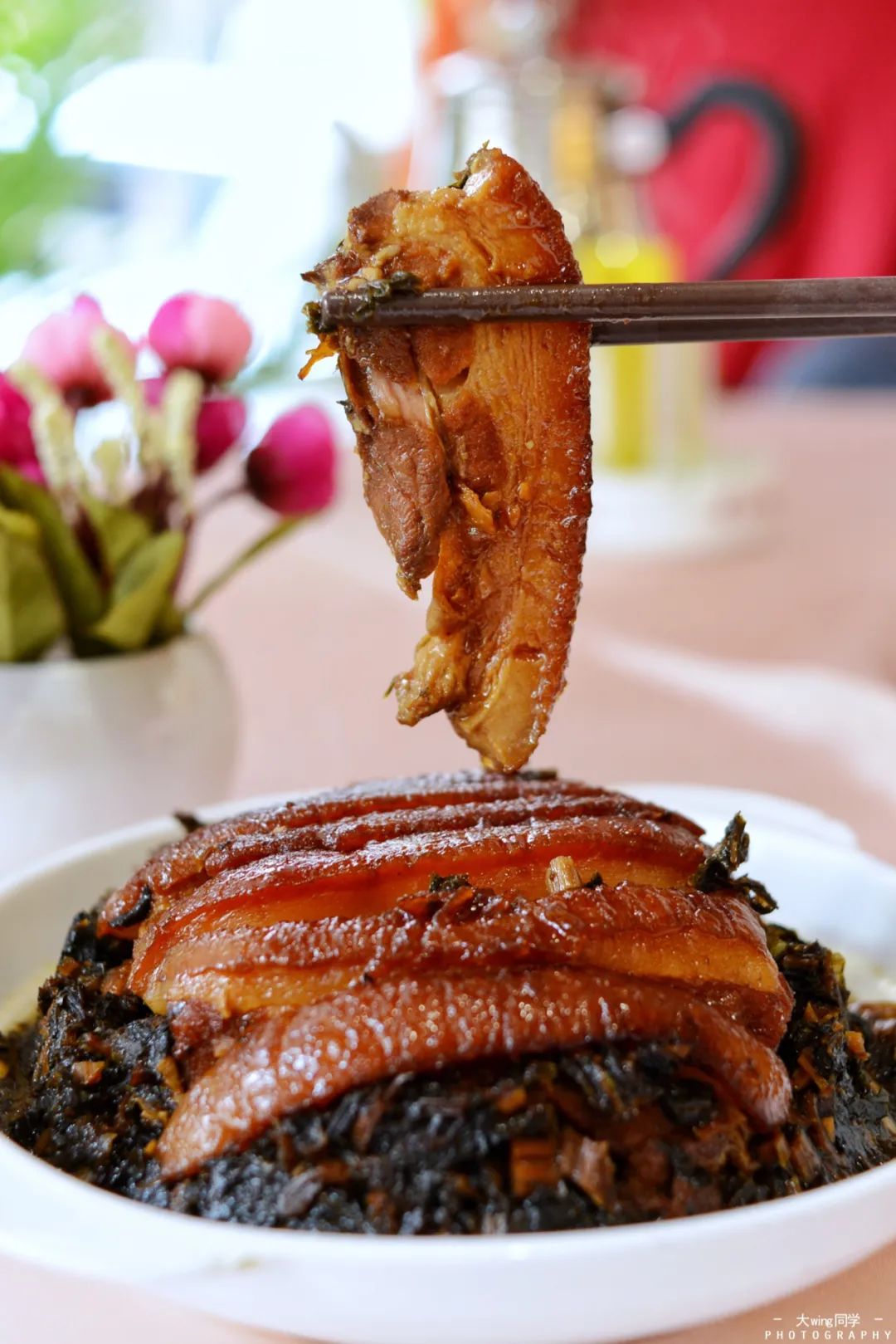 ▲醇香肉嫩的扣肉,清甜爽口的梅菜,是梅州人关于味觉的独家记忆。图/穷游er 大wing同学|腌面