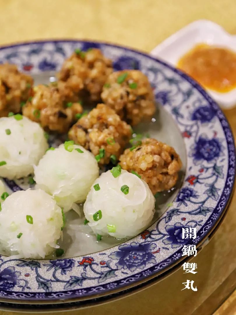▲一素一肉的开锅双丸 图/穷游er 饭团karenchow 在梅州很多地方,凡有宴席,餐桌上一般都会上一盘热气腾腾的开锅肉丸。