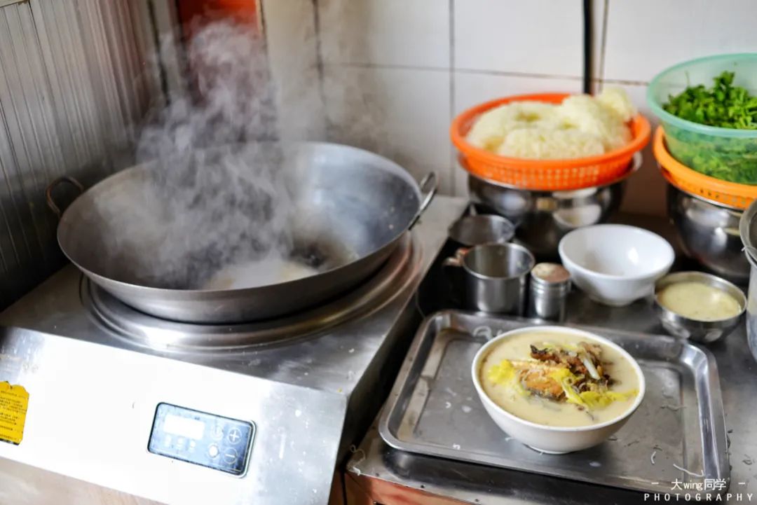 图/穷游er 大wing同学鱼头煮粉所选用的鱼是草鱼,先将鱼头煎到两面金黄再加水,热力将鱼头的蛋白质释放,所以汤底雪白而有香浓,再加入米粉和Q弹的手工鱼丸进行熬煮。