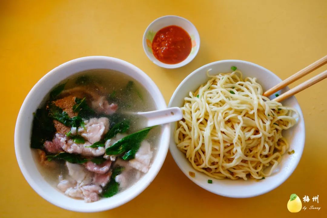在梅州的早晨,腌面无处不在,街坊邻居的问候也通常有一句“食哩腌面么?”开启。