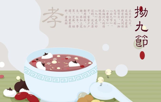 就这样,“拗九节”吃拗九粥,赠送父母,孝敬老人,慢慢变成尊敬老人,孝敬老人的节日。