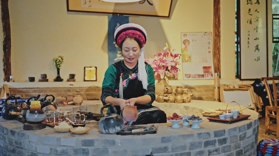 11月20日,董丽正在冲泡白族三道茶。新华社记者 丁怡全 摄