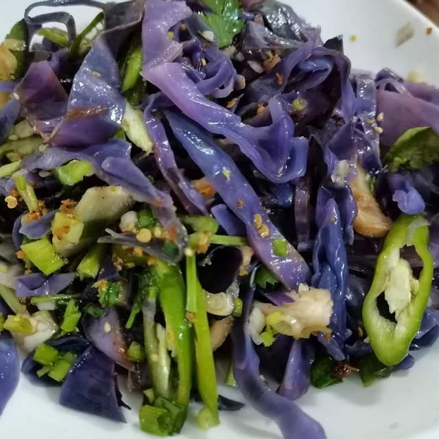 这一道凉拌紫甘蓝卷心菜,颜色看着就很有食欲!口感脆脆的,特别好吃。