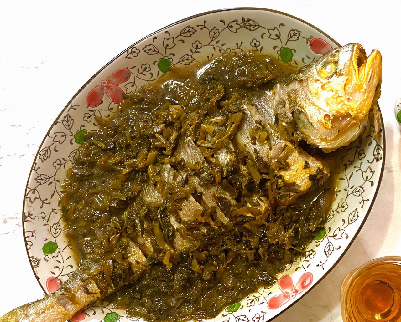 大黄鱼烧咸菜:又称咸菜大鲜,可以说是舟山最具代表性的一道菜了。用雪里蕻咸菜烧煮的大汤黄鱼,咸鲜清爽与肥美鲜嫩,其味更是鲜美无比。大黄鱼洗净,肉厚处划几刀,正反搽盐,肚皮里也擦拭入味。半个小时后,放葱姜料酒,雪里蕻咸菜,隔水蒸10分钟即可。