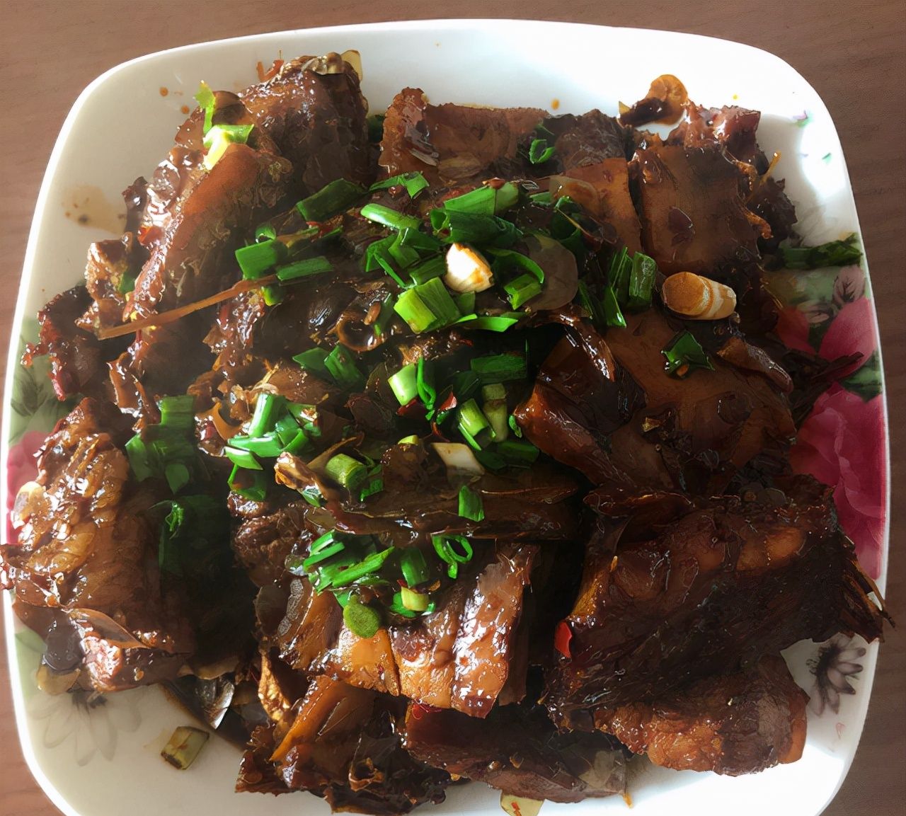 黄鱼鲞烤肉,这是舟山人用来招待客人最有特色的菜。适合做鱼鲞的鱼有很多,其中深受舟山人们喜爱的就要数黄鱼了,通常黄鱼鲞烤肉用的是猪肉,一条大黄鱼,一块五花肉,放在一起烧,热火上浇油,酥烂,入口即化,味道老香了,咸甜口味,鱼肉多汁软嫩。