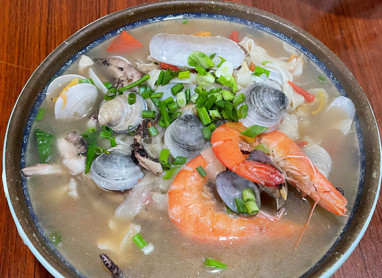 多少人,被舟山海鲜面勾了魂。简单的食材,最不简单的味道。海鲜面,顾名思义就是用海鲜煮面,一碗好吃的海鲜面,里面最注重的是汤头,浇头是一些梭子蟹,小黄鱼,红虾,蛤蜊,鱿鱼,豆腐鱼,熏鱼,肉丸,油豆腐塞肉等,汤里面浓缩了海鲜的精华,其浓郁富有营养的汤底加上顺滑的面条,喝上一口,唇齿之间都留着鲜味,大人小孩个个爱。