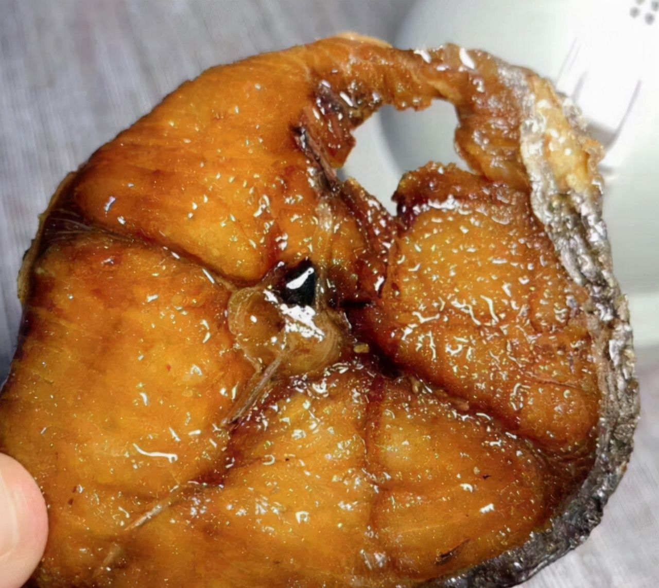 舟山人通常会选择马鲛鱼来做熏鱼的主材料,用细致的刀工,用娴熟的手艺,耐耐心心做出来的,超大条马鲛鱼切成薄薄的一大片,用糖醋汁腌制一晚上,腌制后晒干入油锅炸之后和调制好的糖醋汁一起翻炒,炸完再用糖醋汁浸渍二十分钟,一道甜而不腻的熏鱼就做好了,这糖醋汁可是灵魂所在,舟山人过节婚宴必备冷菜。