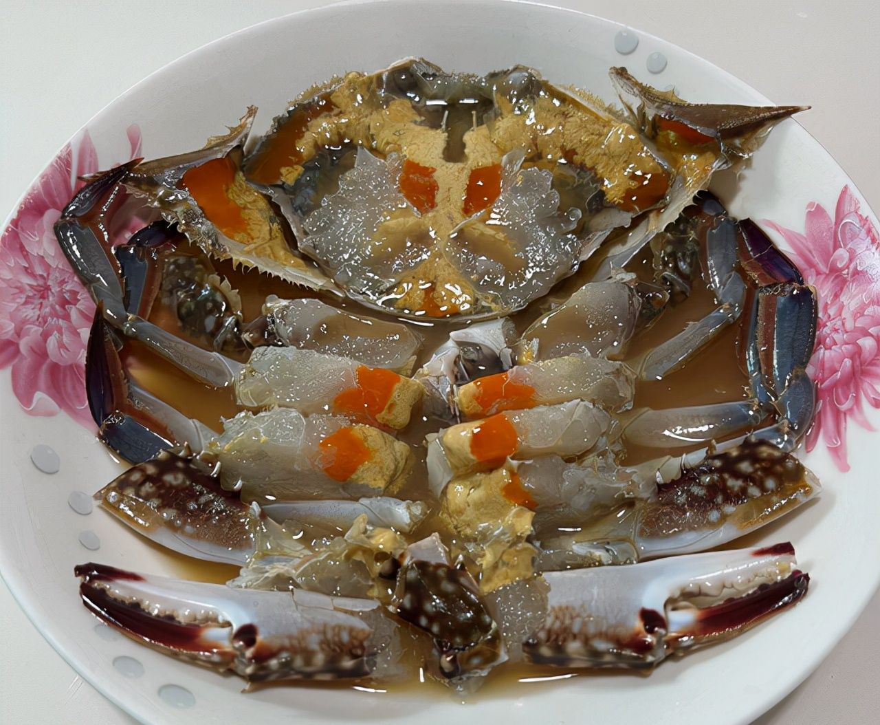 在宁波舟山等地沿海地区,有生食海鲜的习惯,红膏炝蟹非常惊艳!是舟山人的年夜饭必备菜肴,如果吃过舟山的红膏炝蟹,你会知道那才叫人间上品!第一步是选择品质好的雌蟹,第二步是配制盐水,第三步是腌制,炝蟹的肉质特别爽滑有点像果冻但比果冻更细滑,入口即化的感觉,味道鲜甜爽口,吃过绝对记忆犹新。