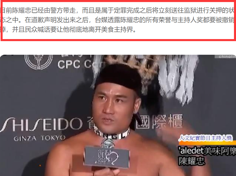 来自台媒媒体那边的消息说,陈耀忠的所有荣誉和主持人奖会被撤销掉,民众也喊话他彻底离开美食主持人界。