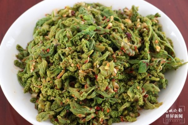 凉拌桑椹花,味道则要更本真一些。刚摘回来的桑椹花用清水漂洗干净后,下热水焯一下,捞出。青绿色的桑椹花过凉水后加入蒜丁、辣椒等作料,满盘都是春天的颜色,吃一口,鲜甜清香,从视觉到味觉,感觉整个春天都在全身蔓延。