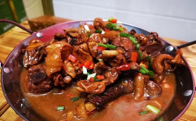该村特色菜肴是九公寨红烧土鸡,土鸡是本村特色走地鸡,肉质紧实。