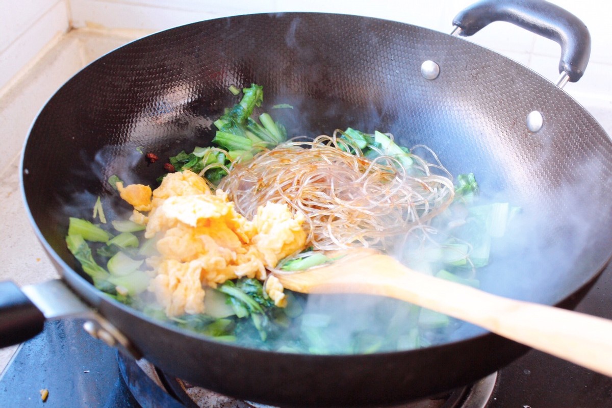 低脂美食:小白菜烩蛋粉,口感清新,低脂低卡,清爽不油腻!