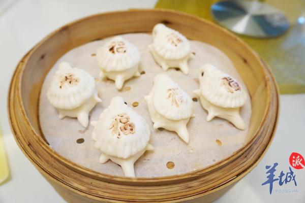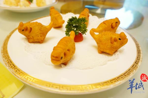 瑶柱鲜虾白兔饺、咖喱鸡粒炸黄金猪、海参滑鸡小刺猬、西山榄仁福寿龟、燕液奶黄雀登梅……12款象形点心,八道咸点,四道甜点,组成了泮溪酒家的南粤非遗点心宴,每款点心都有其独特的寓意。其中,白兔饺陪伴着老广们大半个世纪,至今依旧人气极旺。