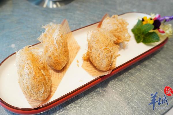 芋角,是老广们在茶楼中能经常吃到的点心,但若要品尝如同蜂巢一般层叠酥化的怀旧芋角,则可以去刚复业不久的广州宾馆得云宫。