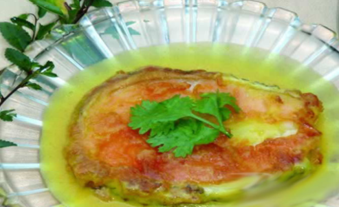 2、起锅放入咖喱皇烧开,放入煎好的银鳕鱼,小火煨8分钟,取出摆入盘中,原汤漏掉渣滓,上火烧开,勾芡淋在银鳕鱼上。