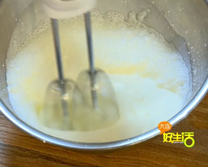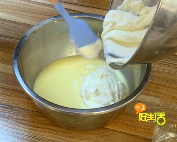 柠檬汁蛋液融合的液体 + 淡奶油混合