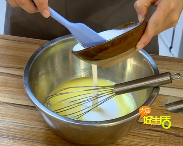 酸奶倒入蛋黄液里面 搅拌
